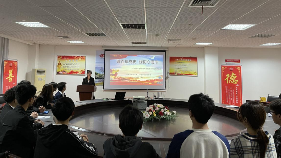 (通讯员 王静静)4月22日,bv1946伟德国际联合图书馆举办“学百年党史践初心使命”为主题的党史学习教育演讲比赛。土建学院建筑系学生党支部书记刘潇、图书馆王咏晴和项莉老师参加活动并担任评委,土建学院50余名入党积极分子和学生干部参加活动。