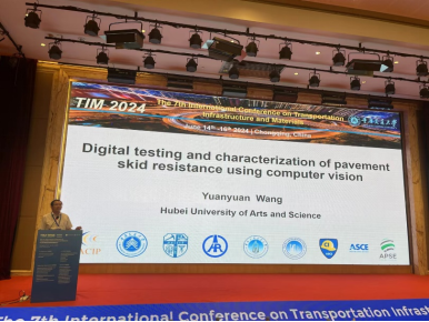 王元元主持Skid Resistance of Pavements for Enhanced Safety论坛并作了题为Digital Testing and Characterization of Pavement Skid Resistance Using Computer Vision的学术报告,杨建华在Recent Development of Asphalt Modification and Application论坛作题为Exploration for Cohesion and Adhesion Characteristics of High Viscosity-modified Asphalt: Impacts of Composition-associated Factors and Thermal Aging的学术报告,交流分享在各自研究领域的最新成果。