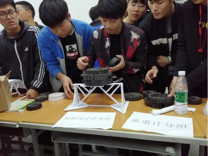 活动过程中,同学们通过奇思妙想﹑积极动手,团队内部协调配合,创造出了各种结构精巧的纸桥模型,但单靠美观还不行,最重要的是通过严密的思维过程想出一个能承受更多砝码重量的结构,来检测纸桥结构的坚固程度。同学们严密的计算着结构数据,细心的描绘裁剪结构轮廓,一场思维的聚焦在此产生了激烈碰撞。