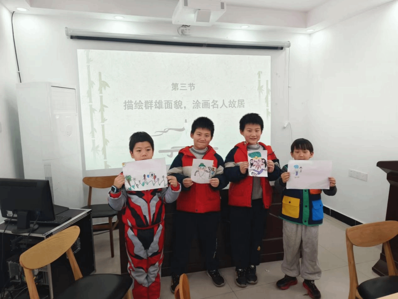 在互动环节,孩子们通过回答PPT上的问题,共同巩固前面讲的三国文化知识。孩子们充分发挥自己的想象力和创造力,用手中的画笔绘制出心中的“英雄好汉”。现场气氛热烈,欢声笑语不断。孩子们表示,这次的活动意义重大,不仅了解了各路英雄,同时还领略到在动荡时期身为天选之人应该有的担当精神