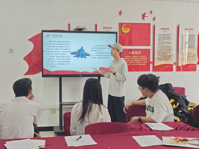 (通讯员 何之瑞)5月27日中午,土建学院于“筑梦”一站式学生社区开展以“火热军营 精彩人生”为主题国防教育主题会。辅导员潘将军担任主讲人,通过政策解读、国防知识普及、军营故事分享等形式,为学生们带来一堂生动的国防教育课。