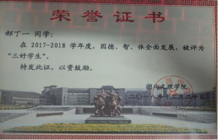 郝丁一一直坚信“好的开端是成功的一半”。在刚入校时,郝丁一便确立了考研的目标,以及在大学里锻炼自己的能力的目标。为了实现自己的目标,他在大学里一直精益求精,将自己的事情做到最好。成为志愿服务部干事后,他积极完成工作,争取留任的机会,充分锻炼了自己的组织和领导能力。在大学四年期间,他留意各种活动并且积极参加,取得了优异的成绩。郝丁一还十分乐于助人,参加了各种志愿服务活动。除了锻炼自己的能力,郝丁一的学业也一直名列前茅,获得了很多奖学金。