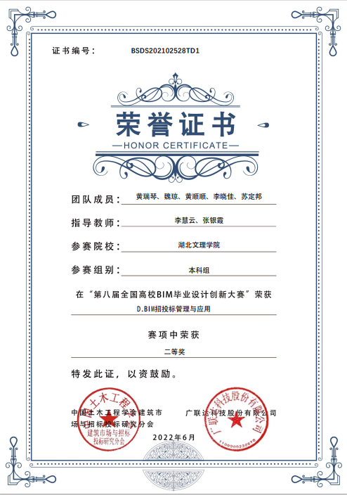 面对各种创业比赛、学科竞赛等,苏定邦积极参与。他主持校级大学生创新创业项目1项,受理发明专利2项,先后发表学术论文4篇,在“第八届全国高校BIM毕业设计创新大赛”BIM招投标管理与应用中获国赛二等奖,在“第七届全国高校BIM毕业设计创新大赛”BIM建设工程管理应用中获国赛二等奖,在“南方测绘杯”第六届全国高等学校大学生测绘技能大赛(虚拟仿真数字测图竞赛)中获国赛二等奖。经历了各类比赛的洗礼后,他深刻感受到自己的综合素质得到了全面提升。