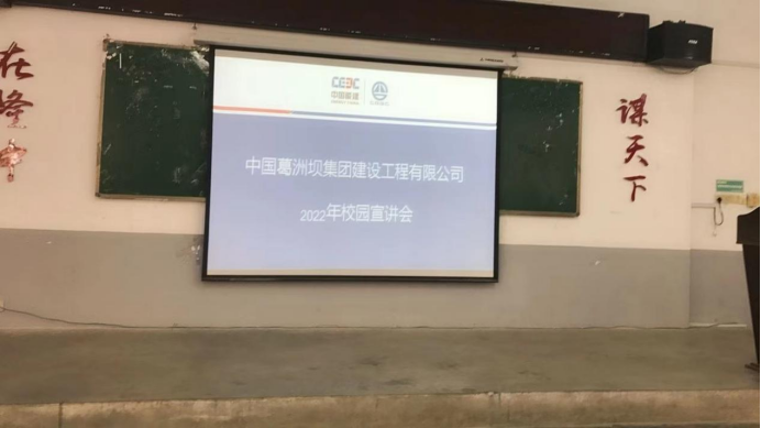 (通讯员 贾勉)2021年9月14日星期二上午10点,中国葛洲坝集团建设工程有限公司于北区4栋阶梯01教室举办2022年校园宣讲会。我院同学积极参与,共计投递七十多份简历。会后企业将通过筛选简历,举行线上面试。